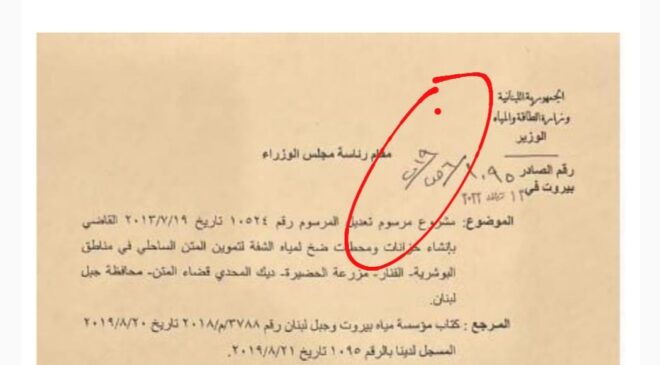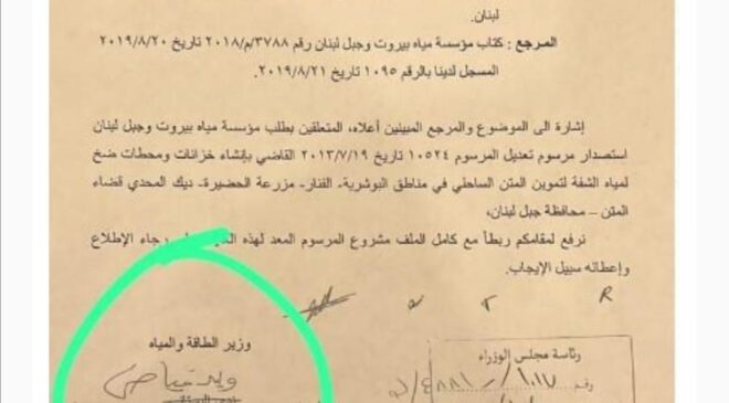 وللعودة إلى الوثيقة والتي تحوّلت إلى دليل ملموس بالتاريخ، مع بعض التعديلات باسم المُرسل، جاء الرد من وزير الطاقة وليد فياض فكتب: اما بالنسبة لما سُمي بالوثيقة فهو لا يتعدّى كونه كتابا قديم تم ارساله مجدداً لتسيير شؤون المواطنين.