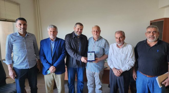 وفي ختام الجولة كرم الوفد مدير مكتب الإسكان في صيدا المهندس سليم ضاهر لمناسبة احالته للتقاعد مقدما درعا تقديرا لجهوده ونشاطه الدؤوب خلال مسيرته المهنية وشكر المهندس ضاهر للوفد على تكريمه ولفتته مقدرا العلاقة المميزة مع أعضاء الوفد الذين نوهوا بعطاءاته المميزة طوال سني الخدمة.